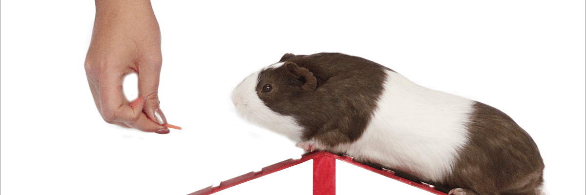 En fait, il est difficile de « dresser » un cochon d’Inde à faire quelque chose qui n’est pas utile pour lui, contrairement au chien, qui sait qu’il gagnera la satisfaction de son maître. Vous pouvez cependant essayer d’apprendre des petits tours simples, comme par exemple tourner plusieurs fois avant d’avoir un petit bout de carotte, tourner autour de la gamelle, marcher sur un petit pont en rondin, passer dans un tunnel ou un cerceau, etc. L’utilisation du clicker – comme pour les chiens – est déconseillée. En effet, ce type de son très sec fait peur au cochon d’Inde. Servez-vous plutôt de votre voix et de petits morceaux de légume en guise de friandise pour le récompenser ! C’est là clé du succès.