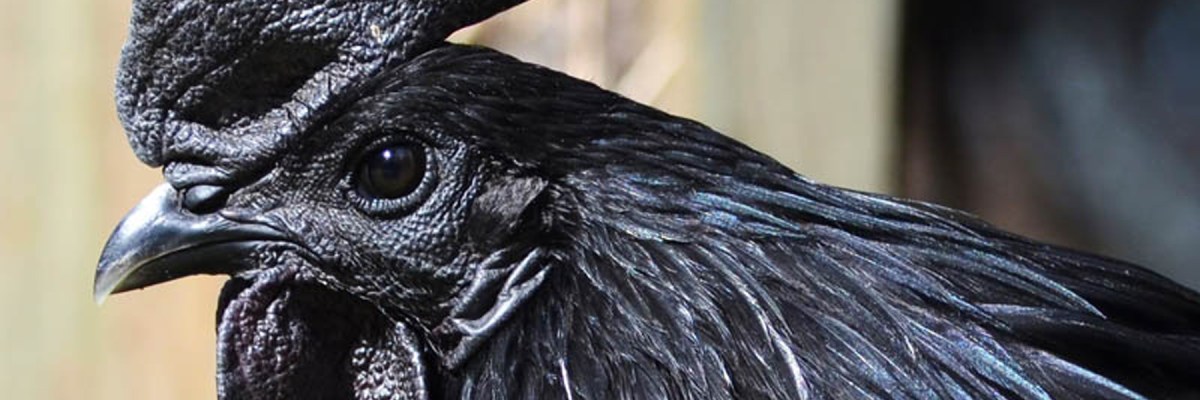 Cette race qui commence à se voir en France est originaire d’Indonésie, de l’île de Java. Là-bas, elle a toujours été considérée comme ayant des pouvoirs mystiques, et on l’utilisait lors de rituels. On dit qu’elle porte chance, et que même que le sang de ce volatile sacré est noir comme de l’encre. En fait, il est tout aussi rouge que celui des autres volailles, bien que certains éleveurs affirment qu’il est un peu plus foncé.