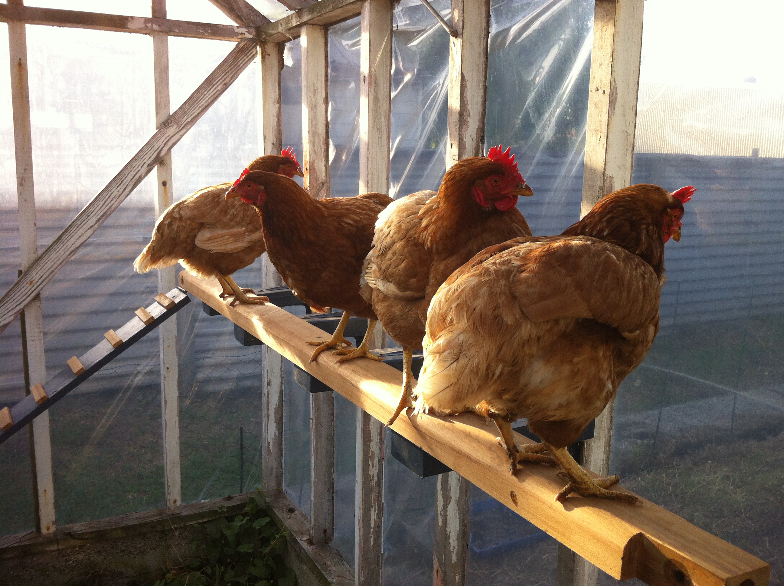 La nuit, les poules se réfugient dans leur abri pour y dormir. Contrairement à certaines idées reçues, elles ne dorment pas dans leur nid, mais préfèrent rester sur un perchoir. En plein sommeil, c’est le poids du corps de la poule vers l’arrière qui, mécaniquement, tire sur les tendons et permet aux doigts de se replier sur le perchoir – et aux griffes de s’y accrocher – sans effort musculaire. Ainsi, la poule peut dormir tranquillement, sans risque de tomber.