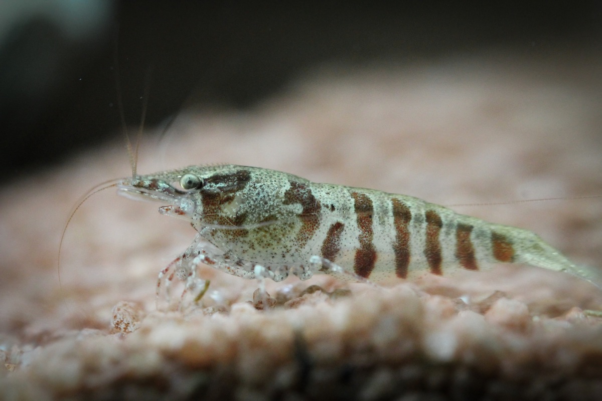 Si vous vous intéressez aux crevettes plus “originales”, vous pouvez opter pour des Macrobrachium, ou crevettes à longues pinces. M. assamense est l’espèce la plus courante, les autres étant relativement difficiles à trouver. Elle est très robuste et s’adapte à toutes les conditions. Sa robe beige marbrée en fait une reine du camouflage.