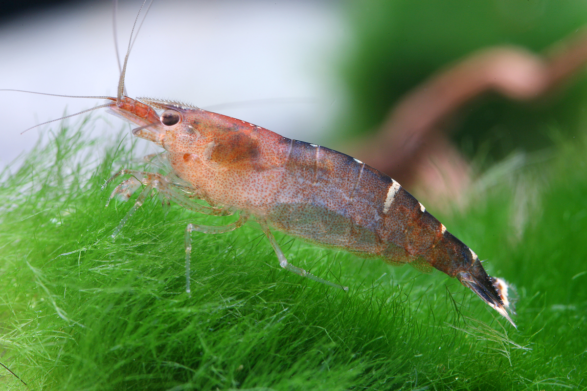 On ne présente (presque) plus Caridina multidentata. Auparavant appelée Caridina japonica, on la connaît aussi sous le nom de “crevette japonaise” ou “crevette Amano”. Elle a beau avoir une simple robe beige, elle n’en reste pas une espèce fascinante, surtout quand on débute : cette espèce n’est pas du tout timide, et elle est très active, sans cesse en train de “picorer” et nettoyer l’aquarium. Elle est aussi connue pour sa remarquable longévité, qui peut atteindre plus de 15 ans ! Malheureusement elle ne se reproduit pas en eau douce, et que son élevage en eau saumâtre reste très difficile (seuls quelques experts ont réussi).