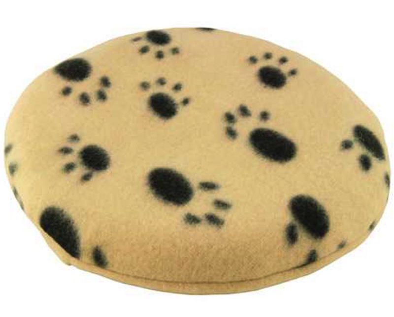 On retrouve le même système avec le coussin chauffant Aumüller lui aussi garni d’épautre, mais cette fois-ci recouvert d’une housse en fourrure synthétique.