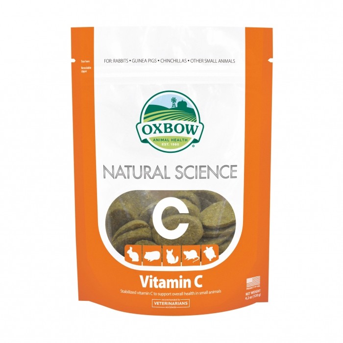Et puis un jour, la marque américaine Oxbow a créé la vitamine C sous forme de comprimés à croquer. Victoire ! Enfin quelque chose de facile à donner aux cochons d’Inde, et que la plupart du temps ils croquent avec délice !